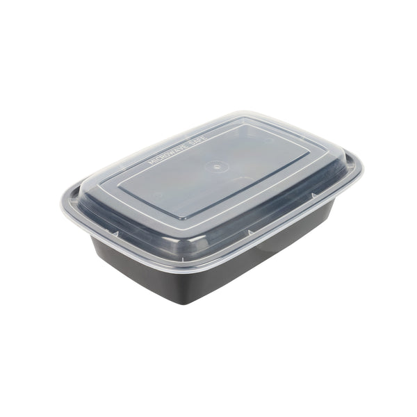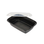 38 OZ RECTANGLE BLACK PLASTIC TO GO BOX - WITH CLEAR LID, MICROWAVABLE