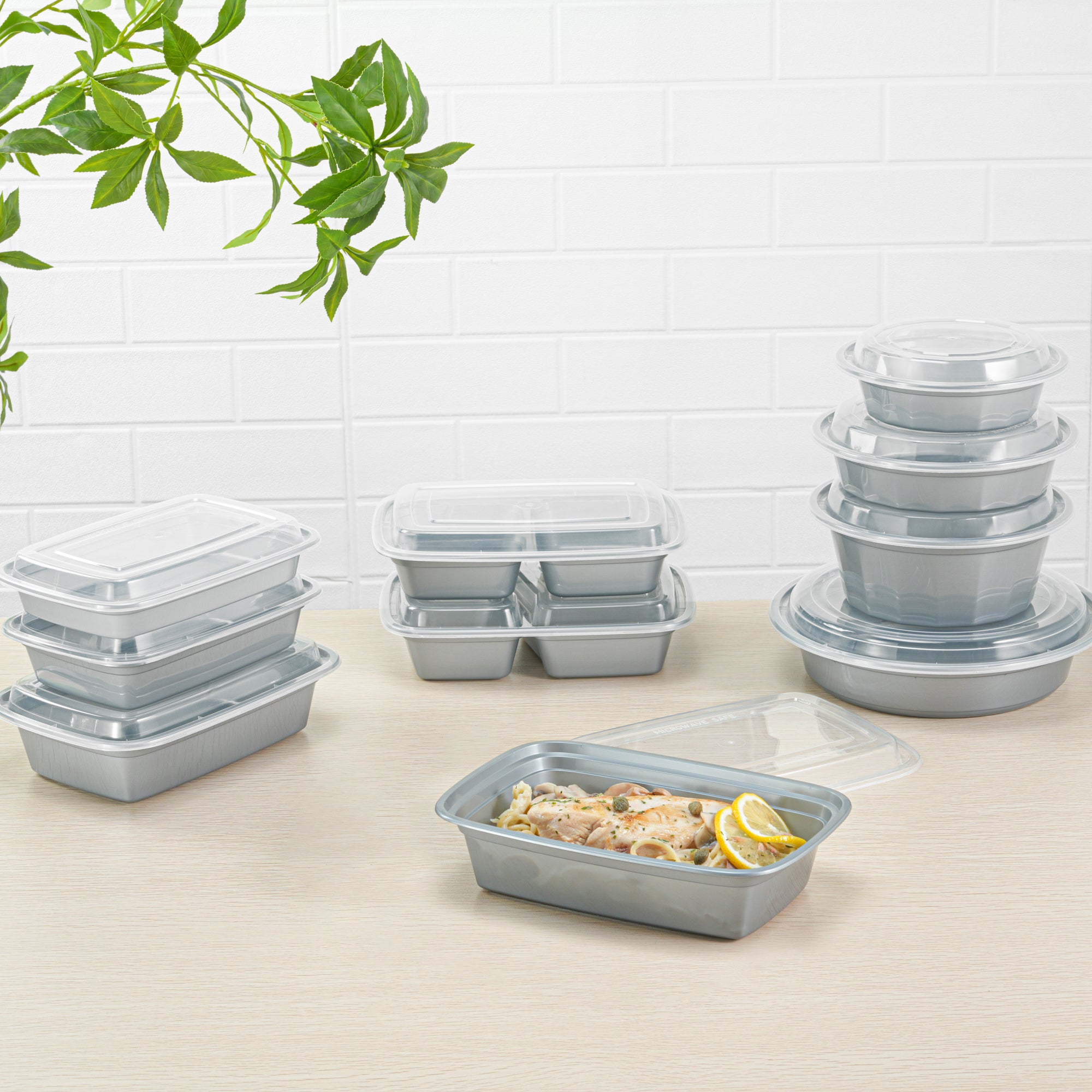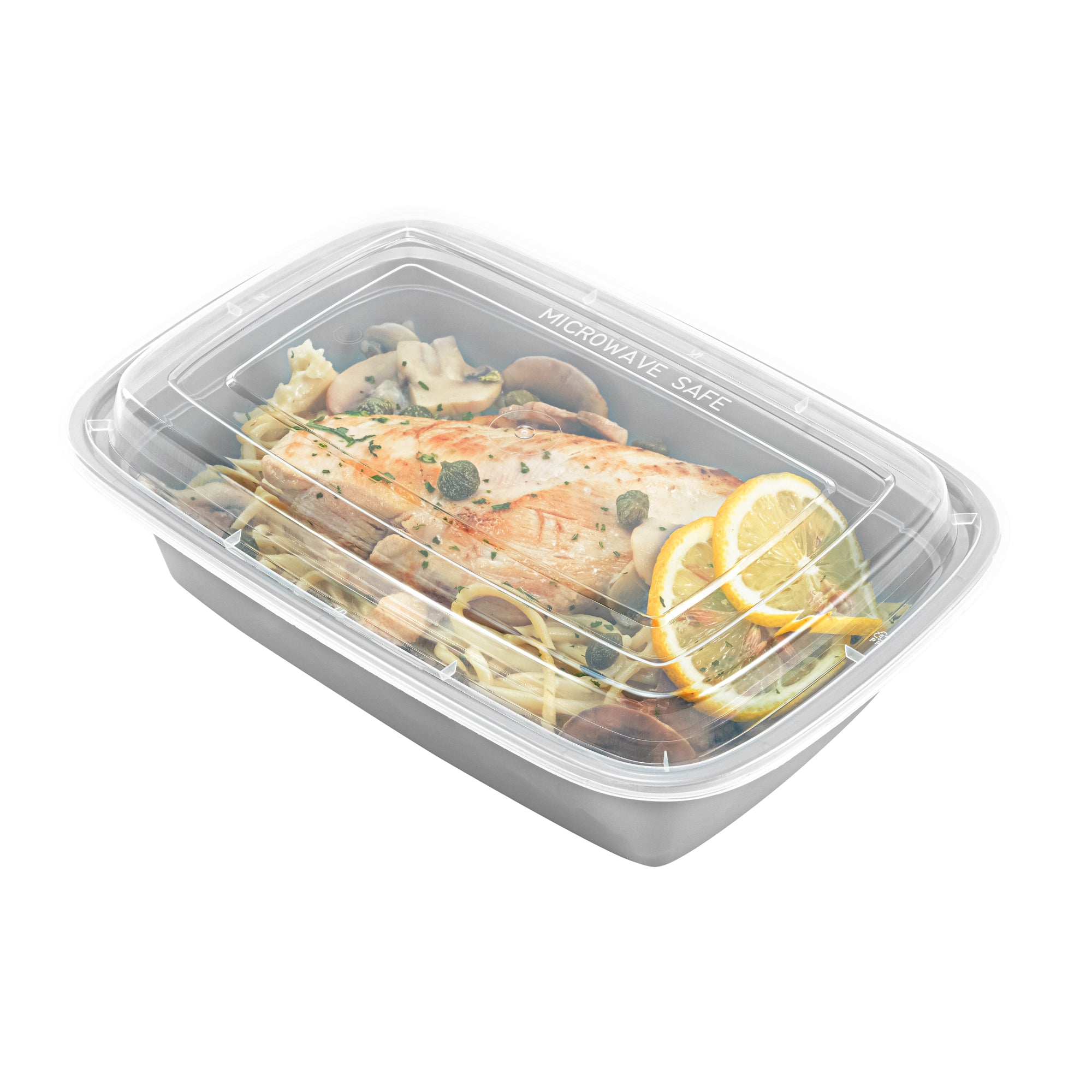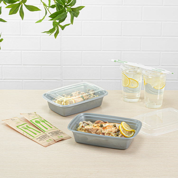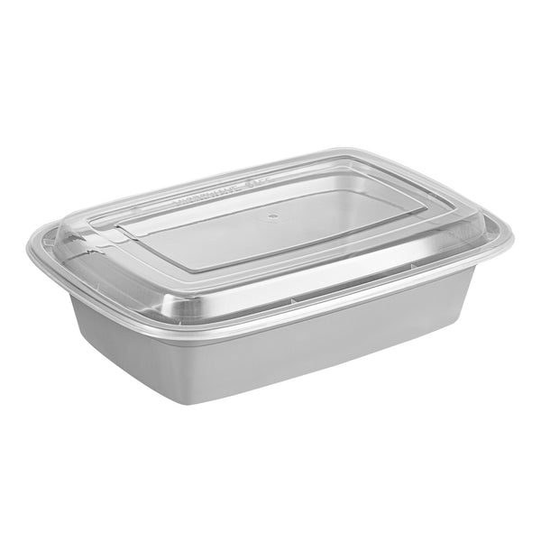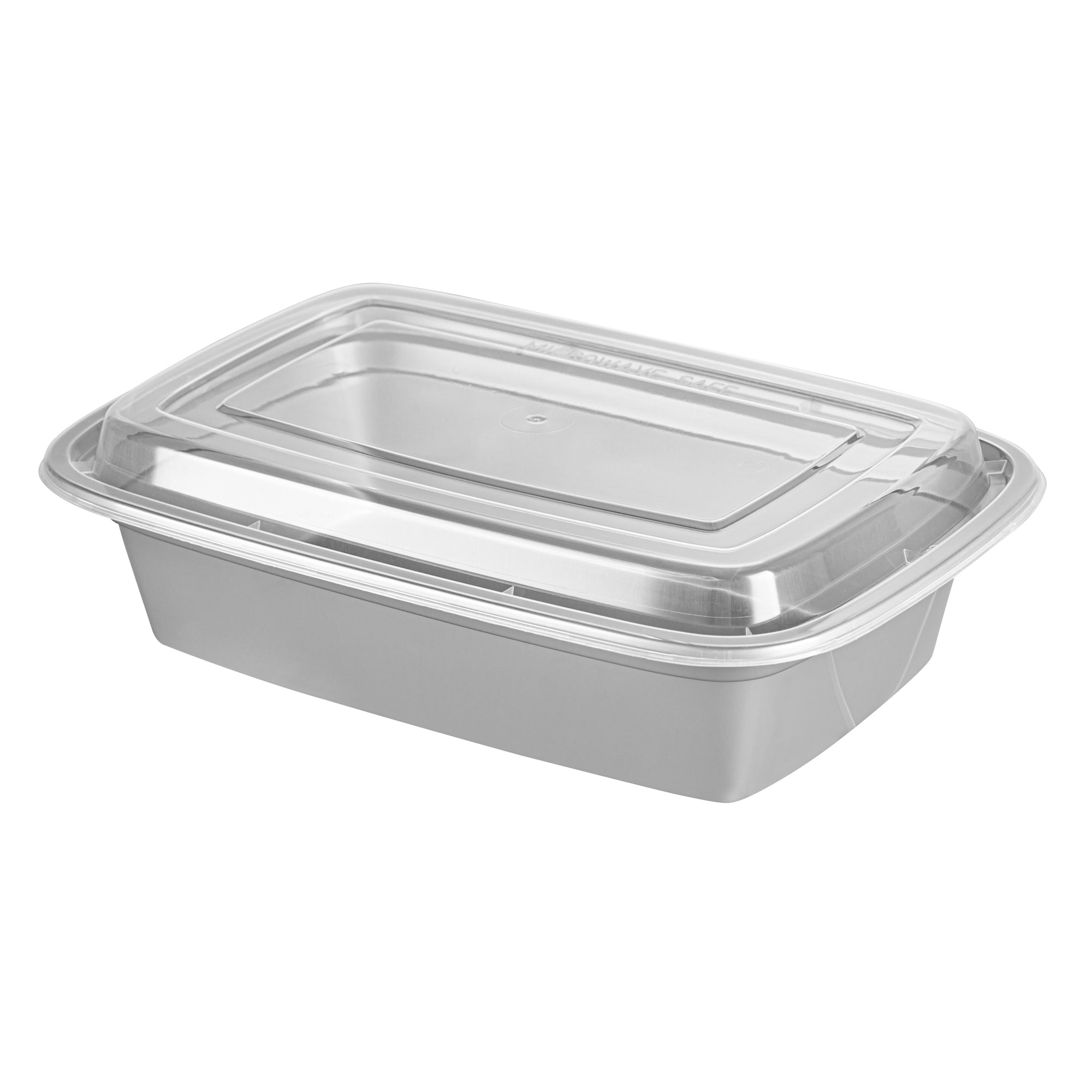 Elevate your food packaging with our Asporto 38-ounce Rectangle Silver Plastic To Go Boxes. The clear plastic lids of these take out containers form a tight seal and prevent spills in transit, ideal for keeping your food intact. These takeaway boxes are microwave-safe and allow you to reheat meals without the need to transfer them to a different container. Crafted from BPA-free plastic, these to go boxes are suitable for packing various hot and cold food items. These to go containers have a sleek silver finish that instantly elevates your food presentation. For an easy post-meal cleaning experience, these carry out containers can be easily discarded after use. These disposable take out containers are recyclable to help minimize your carbon footprint and are ideal for eco-friendly foodservice establishments. Measuring 8.75 inches in length by 6 inches in width by 2 inches in height, these meal prep containers can hold up to 38 ounces and are ideal for accommodating large meals. Sold in a 100 count box.