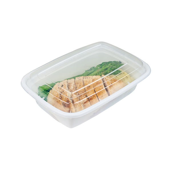 38 OZ RECTANGLE WHITE PLASTIC TO GO BOX - WITH CLEAR LID, MICROWAVABLE