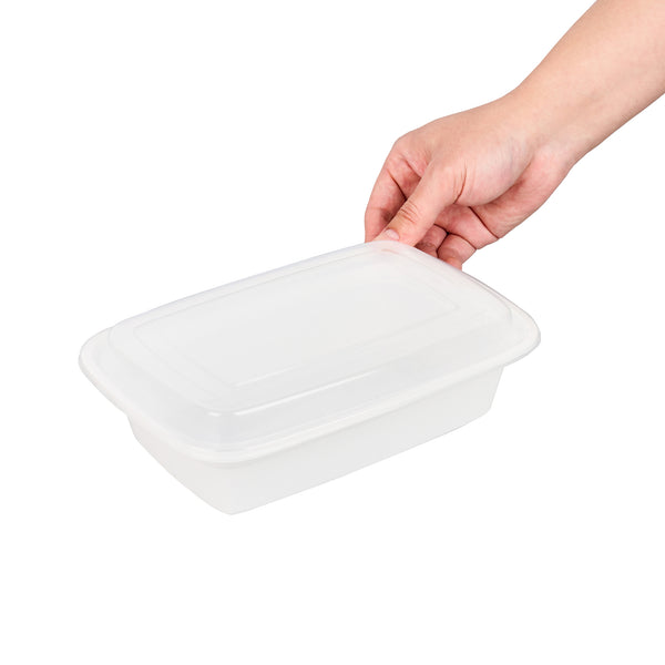 38 OZ RECTANGLE WHITE PLASTIC TO GO BOX - WITH CLEAR LID, MICROWAVABLE