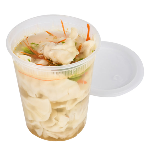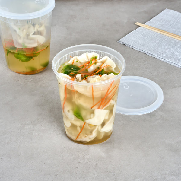 Preserve your leftovers in these clear plastic soup containers, designed for easy refrigeration. Their freezable design ensures your food stays fresh until you're ready to enjoy it again.