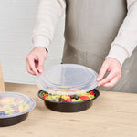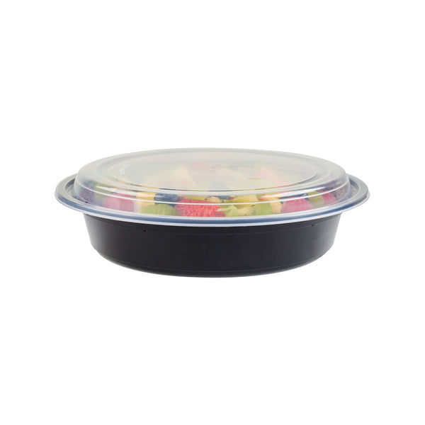 48 OZ ROUND BLACK PLASTIC TO GO BOX - WITH CLEAR LID, MICROWAVABLE