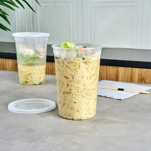 Preserve your leftovers in these clear plastic soup containers, designed for easy refrigeration. Their freezable design ensures your food stays fresh until you're ready to enjoy it again.