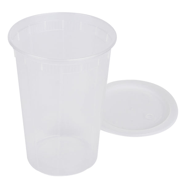 48 OZ ROUND CLEAR PLASTIC SOUP CONTAINER - WITH LID, MICROWAVABLE