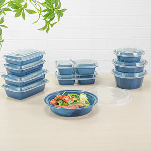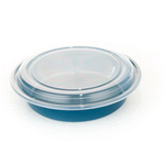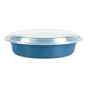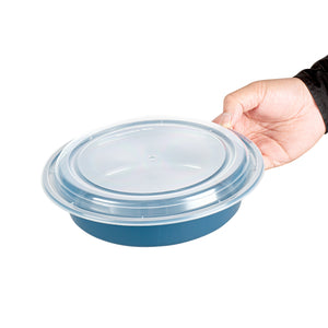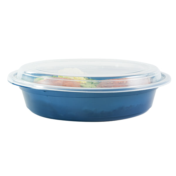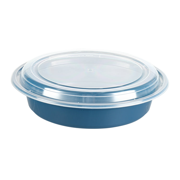 48 OZ ROUND BLUE PLASTIC TO GO BOX - WITH CLEAR LID, MICROWAVABLE
