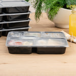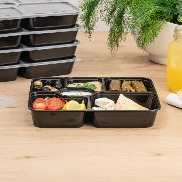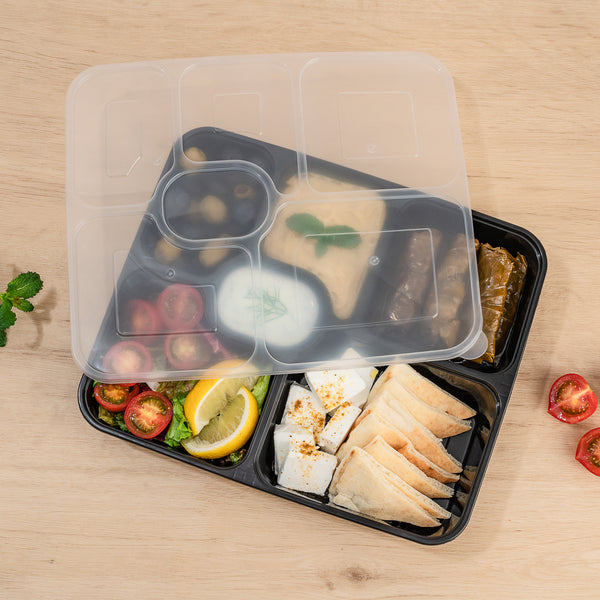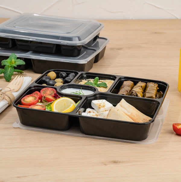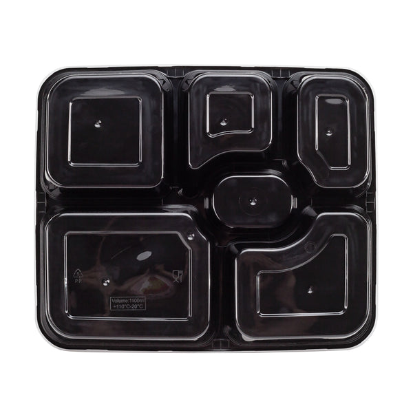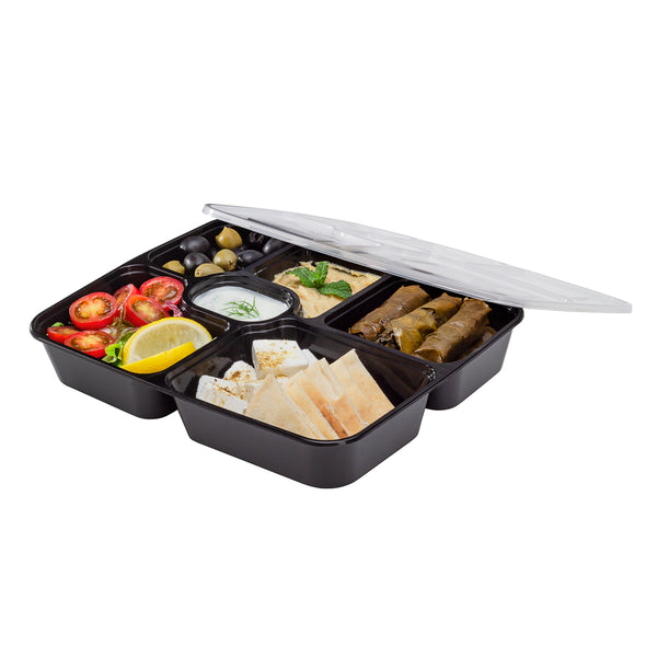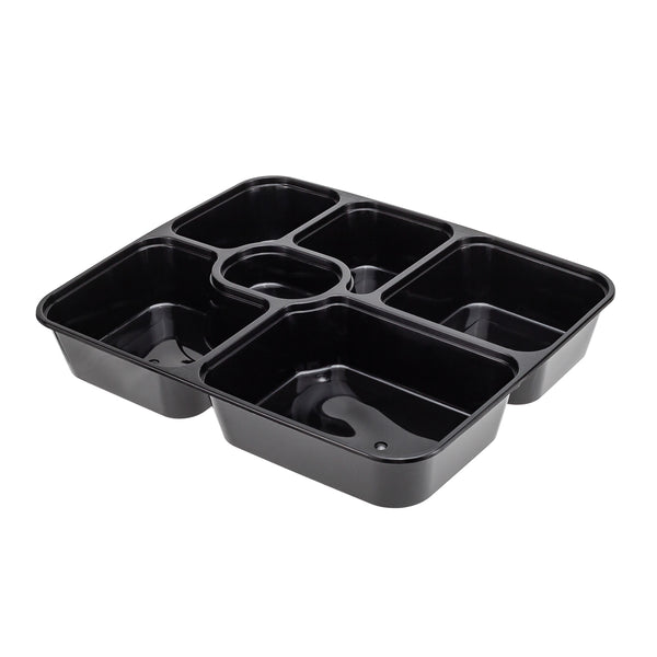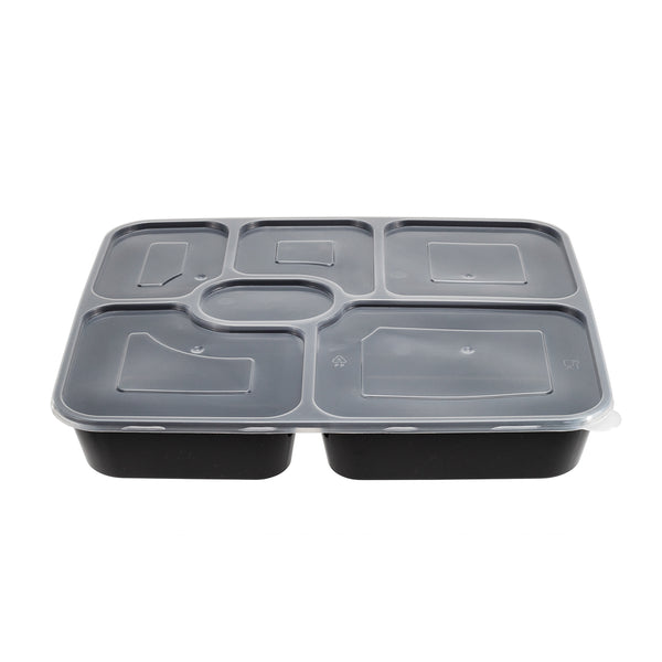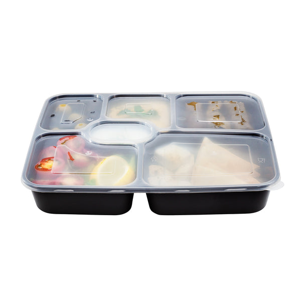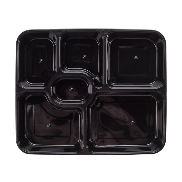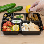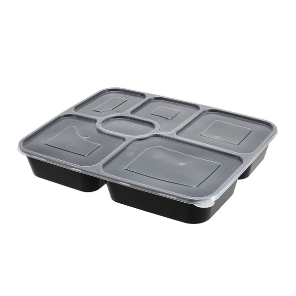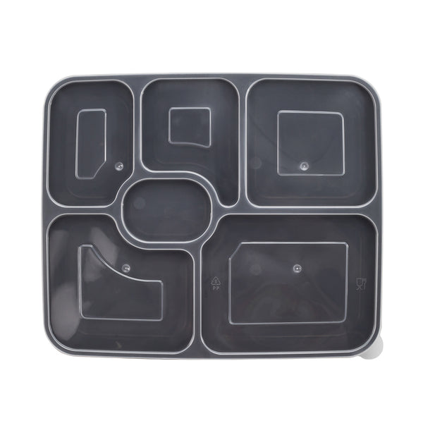 53 OZ PLASTIC 6 COMPARTMENT FOOD CONTAINER - WITH LID, MICROWAVABLE
