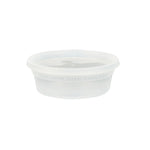 Package side dishes or snacks for take out and delivery services with our Asporto 8-ounce Round Clear Plastic Soup Containers. These transparent soup containers are created from BPA-free plastic and heat-resistant, so you can serve hot piping soups for to go orders. Each carry out container has a tight-fitting clear plastic lid that forms a secure seal for your hearty soups while preventing spills during delivery. These microwave-safe deli containers make them ideal for heating up meals without needing a different container. With a capacity of 8 ounces, these clear containers for take out provide spacious room to pack meals. These disposable food containers are recyclable to provide patrons with an ecologically responsible way to discard them after eating. With a clear finish, these round food containers showcases their contents without the need for unsealing them. Each disposable to go container measures 4.5 inches in diameter by 1.75 inches in height and has a capacity of 8 ounces. Sold in a 25 count box. NOTE: Lids are not for microwave use.