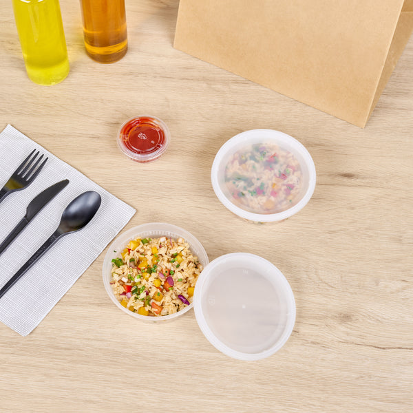 8 OZ ROUND CLEAR PLASTIC SOUP CONTAINER - WITH LID, MICROWAVABLE