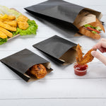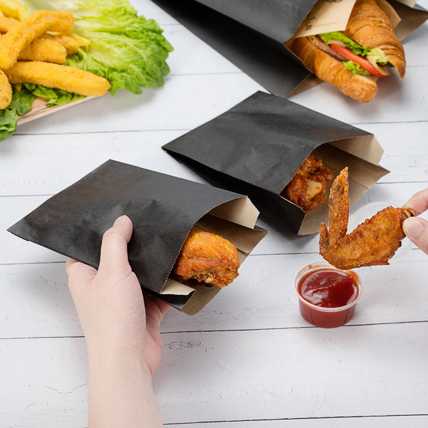 Take delicious fried foods or mini appetizers on the go using our Bag Tek Black Paper French Fry / Snack Bags. With an open-pouch design, these black treat bags allow customers to comfortably carry snacks and make them portable. These disposable treat bags are made with high-quality paper that is conveniently recyclable to meet the eco-friendly standards of your restaurant, food truck, or other foodservice establishment. With a modern black finish, these food bags instantly upgrade the look of your to-go orders. These black treat bags have a greaseproof construction that locks in greases and oils to eliminate messes. These food bags measure 4.25 inches in length by 1.5 inches in width and 6.25 inches in height. Shipped in a 100 count box.
