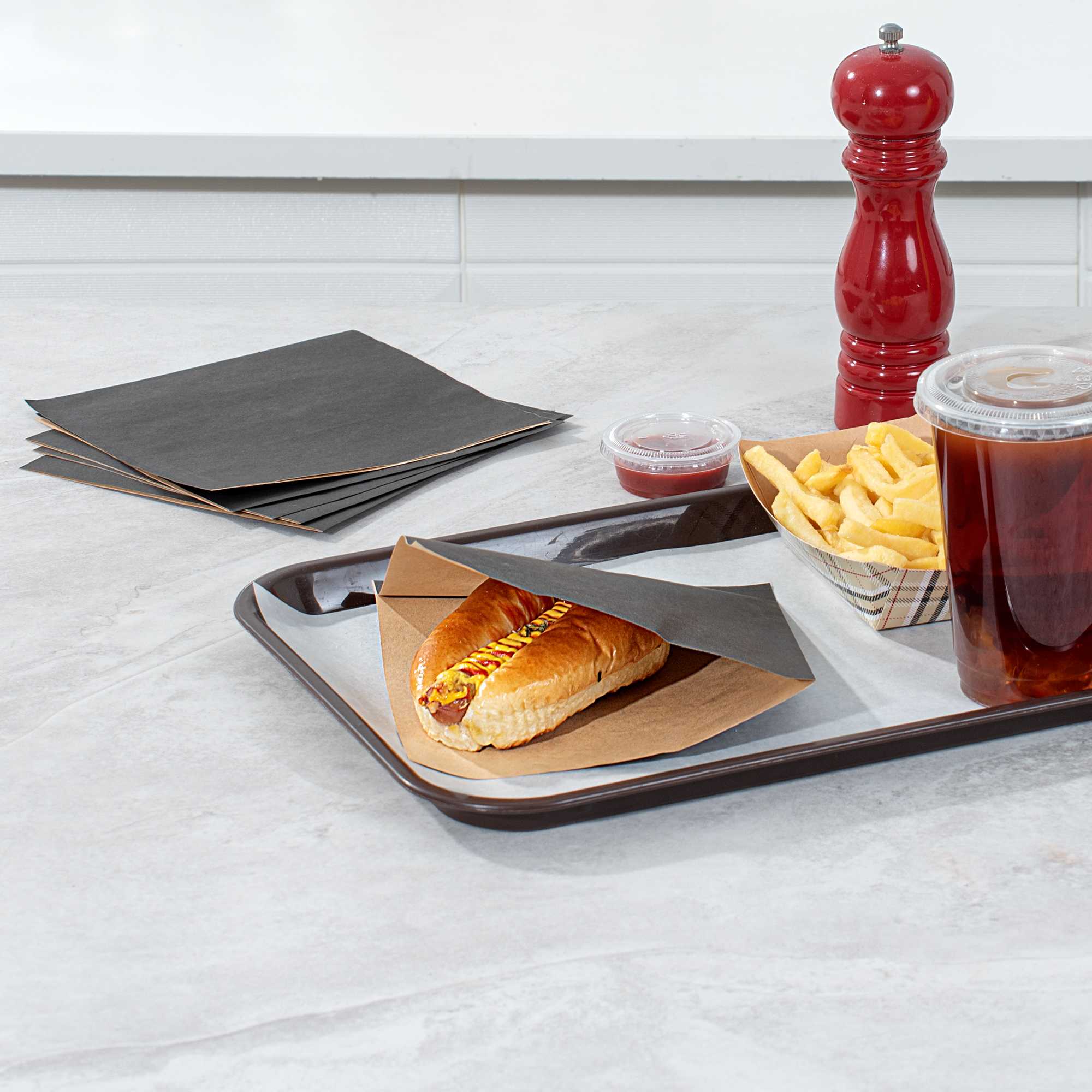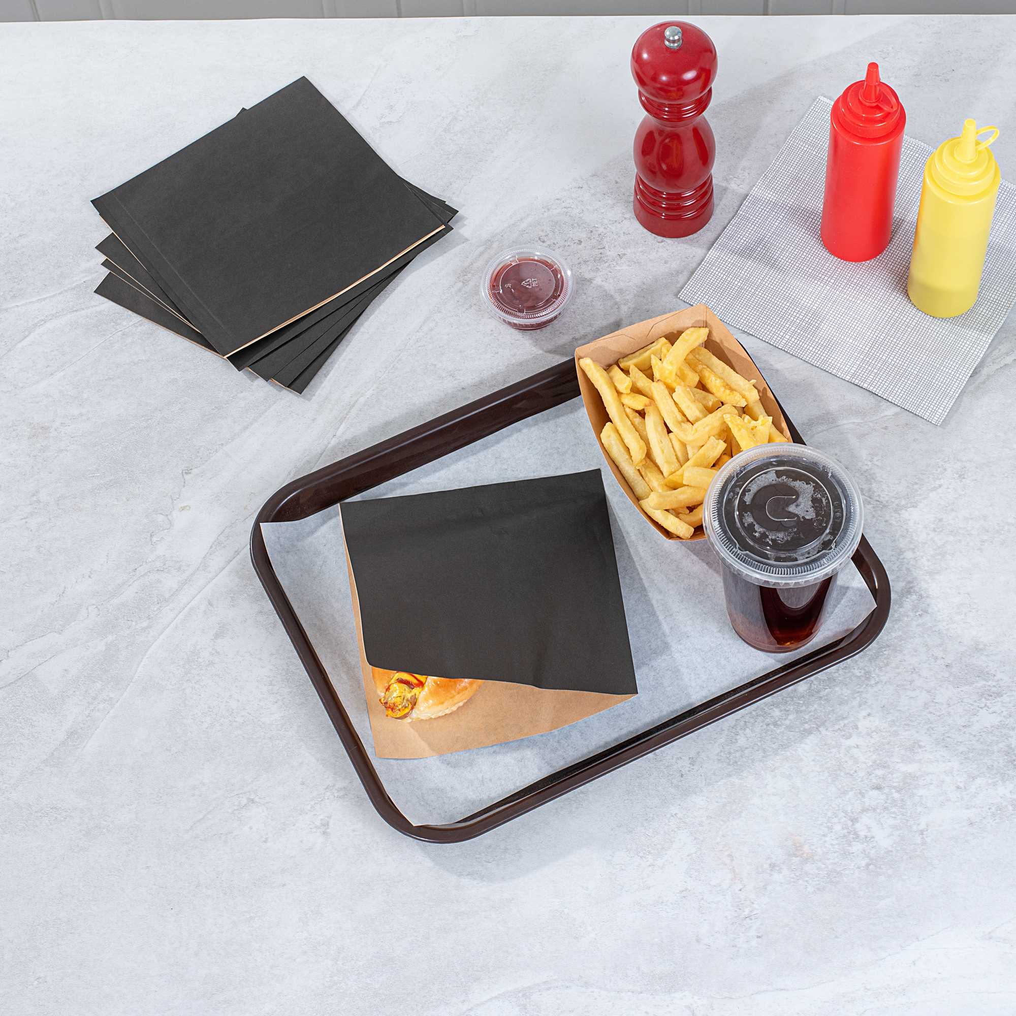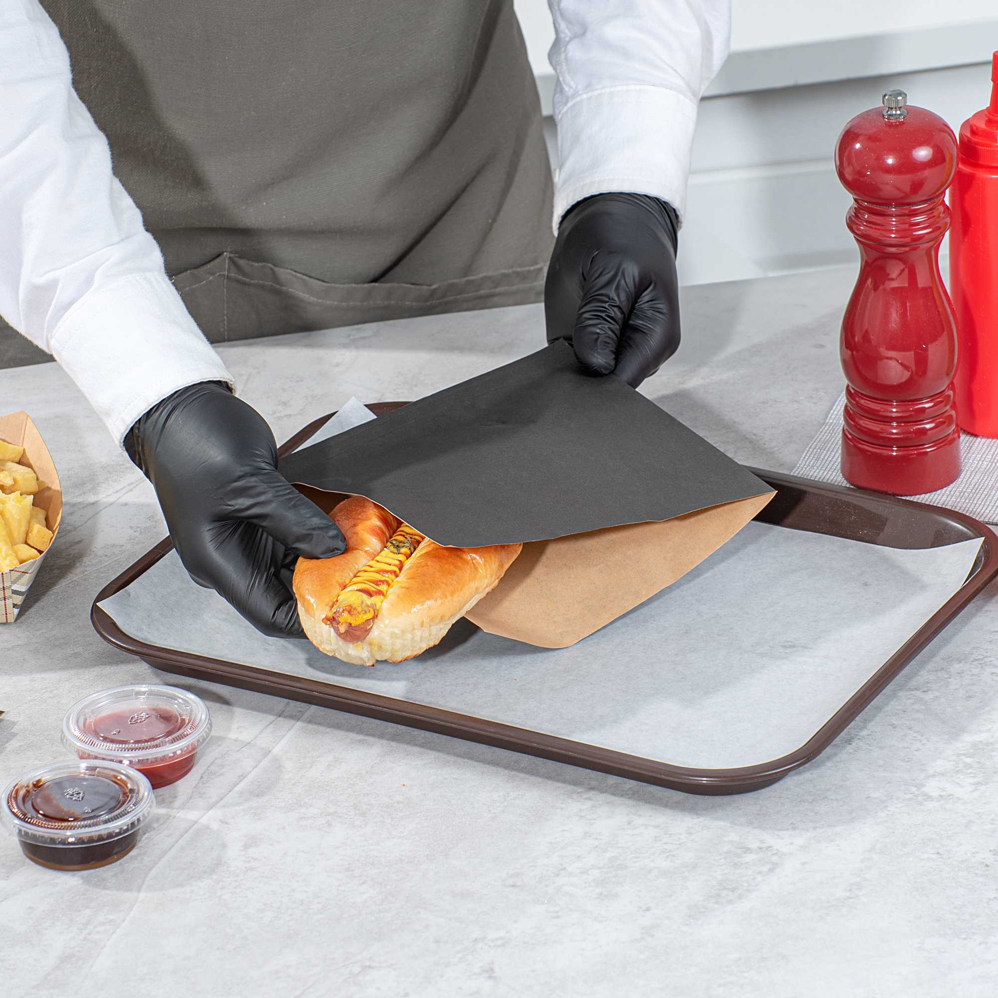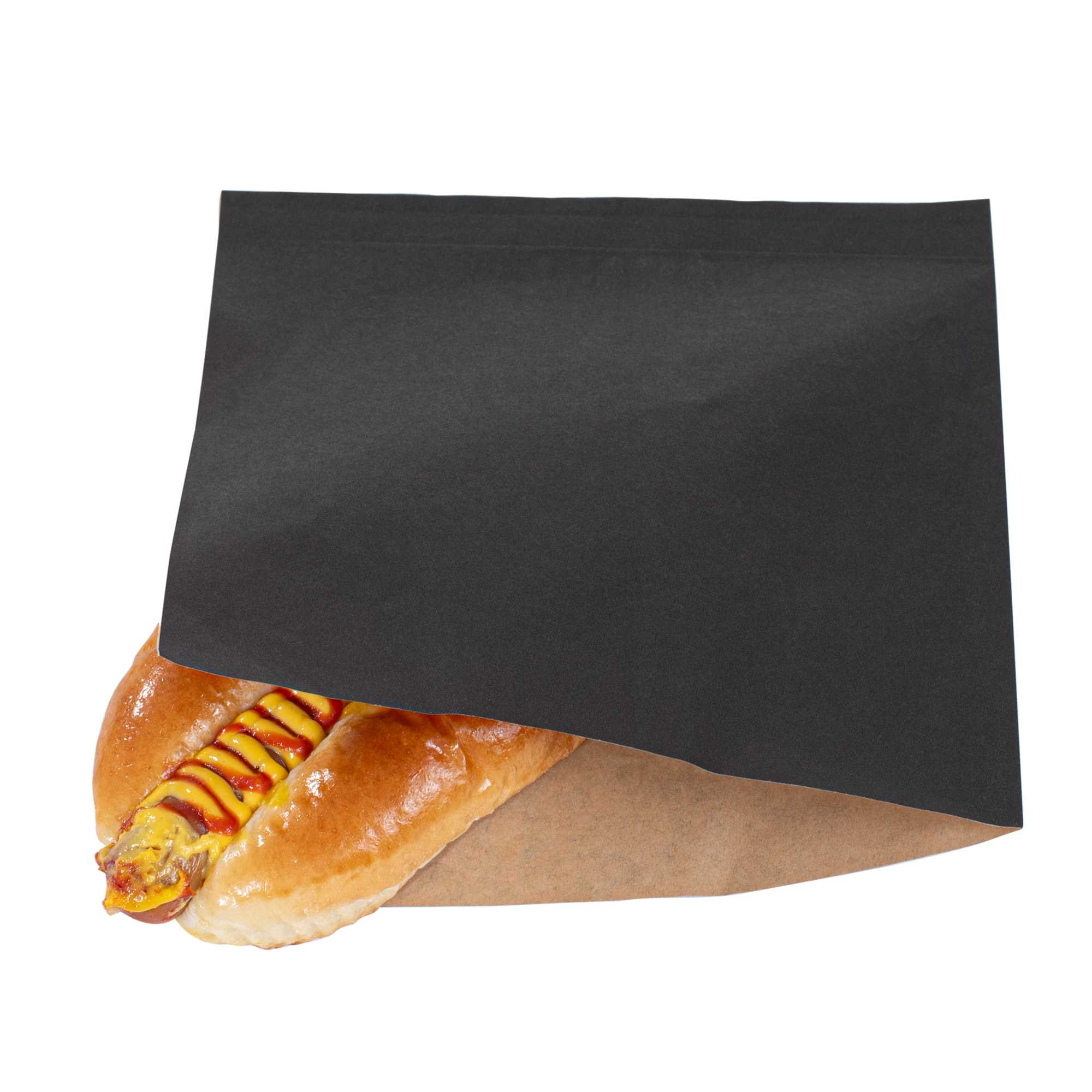 BLACK PAPER MEDIUM DOUBLE OPEN BAG - GREASEPROOF