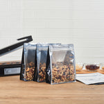 BLACK PLASTIC LARGE SNACK BAG - DOUBLE SEAL, RIP LOCK, HEAT SEALABLE