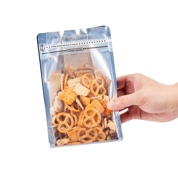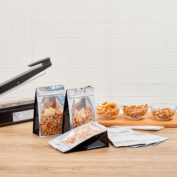 BLACK PLASTIC MEDIUM SNACK BAG - DOUBLE SEAL, RIP LOCK, HEAT SEALABLE