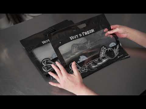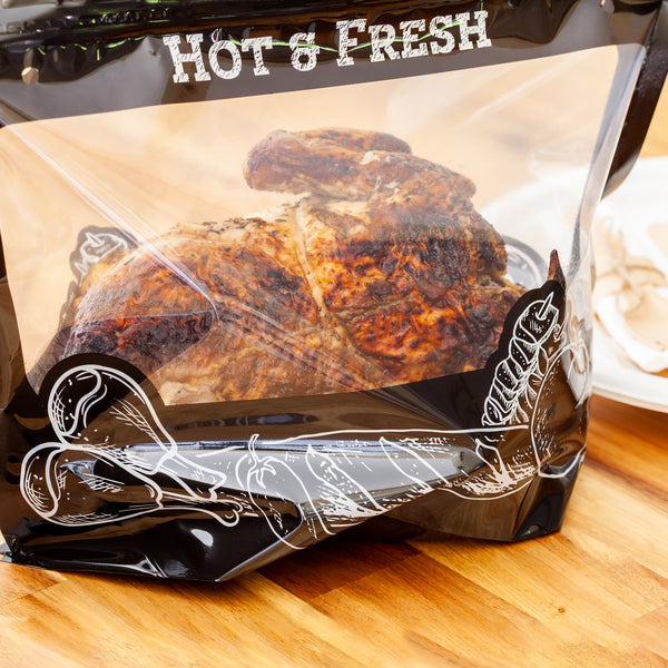 BLACK PLASTIC ROTISSERIE CHICKEN / HOT FOOD BAG - HOT & FRESH
