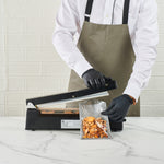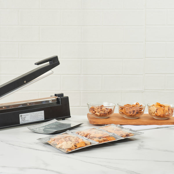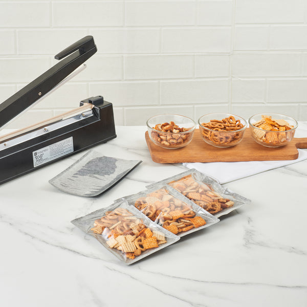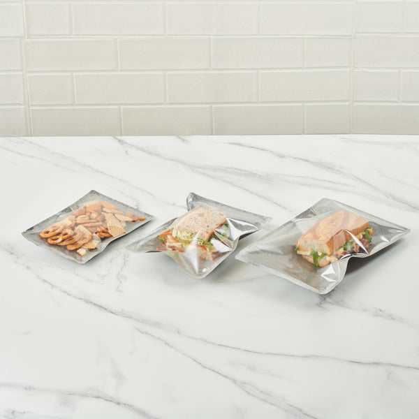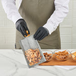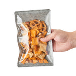 Efficiently pack and sell your tasty treats while preserving freshness using our Bag Tek Black Plastic Small Sandwich and Snack Bags. These sandwich bags can be heat-sealed and provide airtight packaging to maintain the freshness and crispness of snacks. Made to serve a variety of foods, these snack bags are greaseproof to keep the grease and oils from leaking through, avoiding messy spills on clothes. The clear window of these plastic snack pouches allows customers to see the foods inside without the hassle of opening them. Made with durable material, these black plastic bakery bags are ideal for places of business to conveniently pack sides with takeaway orders for customers. With the bold black finish of these plastic bags, one can elegantly pack small portions of sweet and savory snacks for their guests as party favors. Conveniently disposable, these bakery bags make the cleaning process easy. Each snack bag measures 8.25 inches in length by 5.25 inches in width. Sold in a 100 count box.