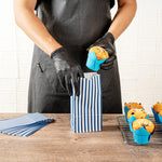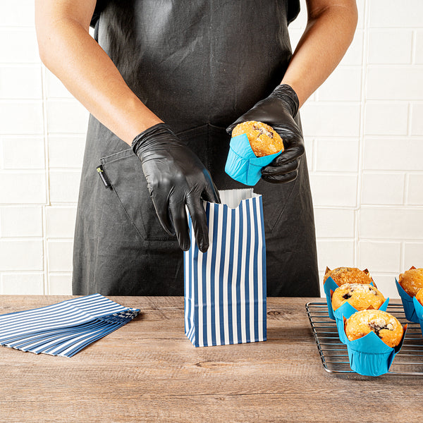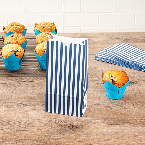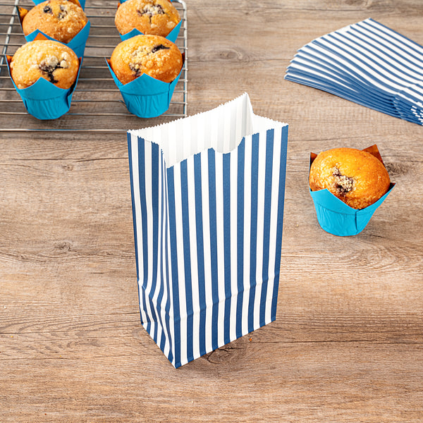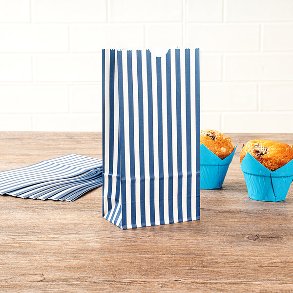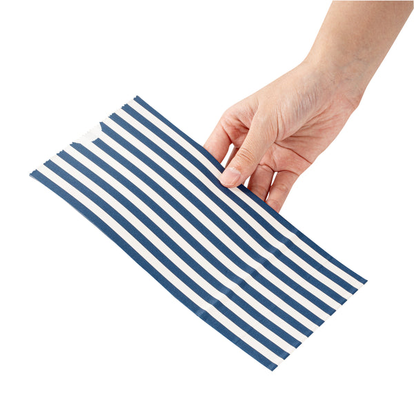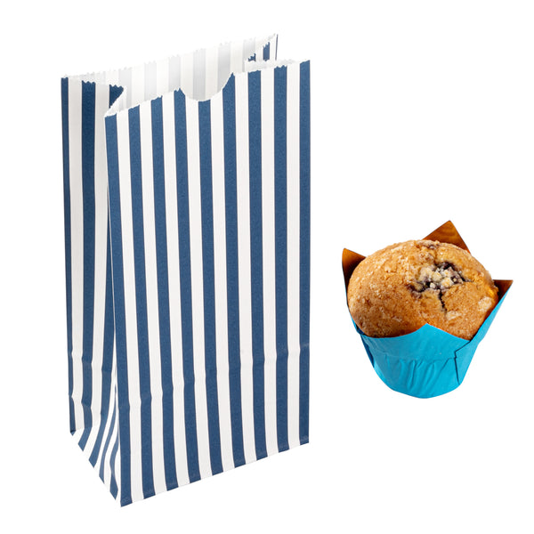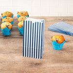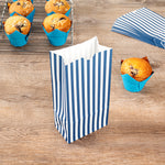 Present your guests' takeaway orders in style with our Bag Tek Blue and White Stripe Paper Bags. Made from robust paper, these merchandise bags are capable of carrying heavy dishes. The charming blue and white stripes of these disposable lunch bags bring a classic appeal to your takeaway services. These paper deli bags have an open-top design that allows for easy packing and quick checks on orders. Capable of withstanding grease and oils, these popcorn bags are grease-resistant and can comfortably pack saucy dishes. These take out bags are freezer-safe to easily store leftovers. The rectangular flat base and side gusset sleeves of these striped bags provide additional space for many items. These 2-pound paper bags are disposable for an effortless cleanup. Each durable paper bag has a capacity of 2 pounds and measures 4.25 inches in length by 2.25 inches in width by 8.5 inches in height. Shipped in a 100 count box.