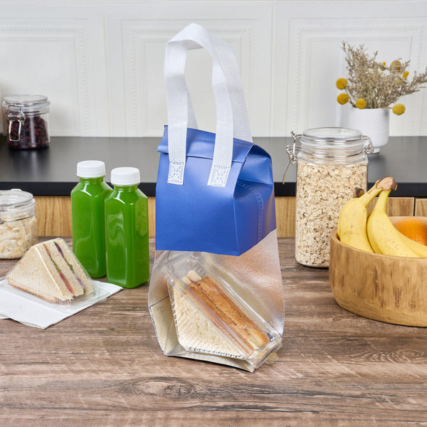 Ensure optimal food temperature and delivery security. Bag Tek Blue Nonwoven Thermal Delivery Bags utilize advanced insulation technology to maintain the ideal temperature of hot and cold foods, enhancing customer satisfaction in thermal delivery bags. Designed with a tamper-evident closure, these bags provide peace of mind by clearly indicating any unauthorized access, making them indispensable for insulated grocery bags. With compact dimensions of 4.75 inches by 4 inches by 11 inches, these bags efficiently accommodate small to medium-sized takeout items, optimizing space and minimizing waste for hot food delivery bags. Crafted from durable nonwoven material, these bags are sturdy yet lightweight, ensuring easy handling and stability with their robust handles during transport. Elevate your foodservice operations with these reliable takeout solutions, designed to uphold food integrity and safety. Each order includes 25 Bag Tek Blue Nonwoven Thermal Delivery Bags.