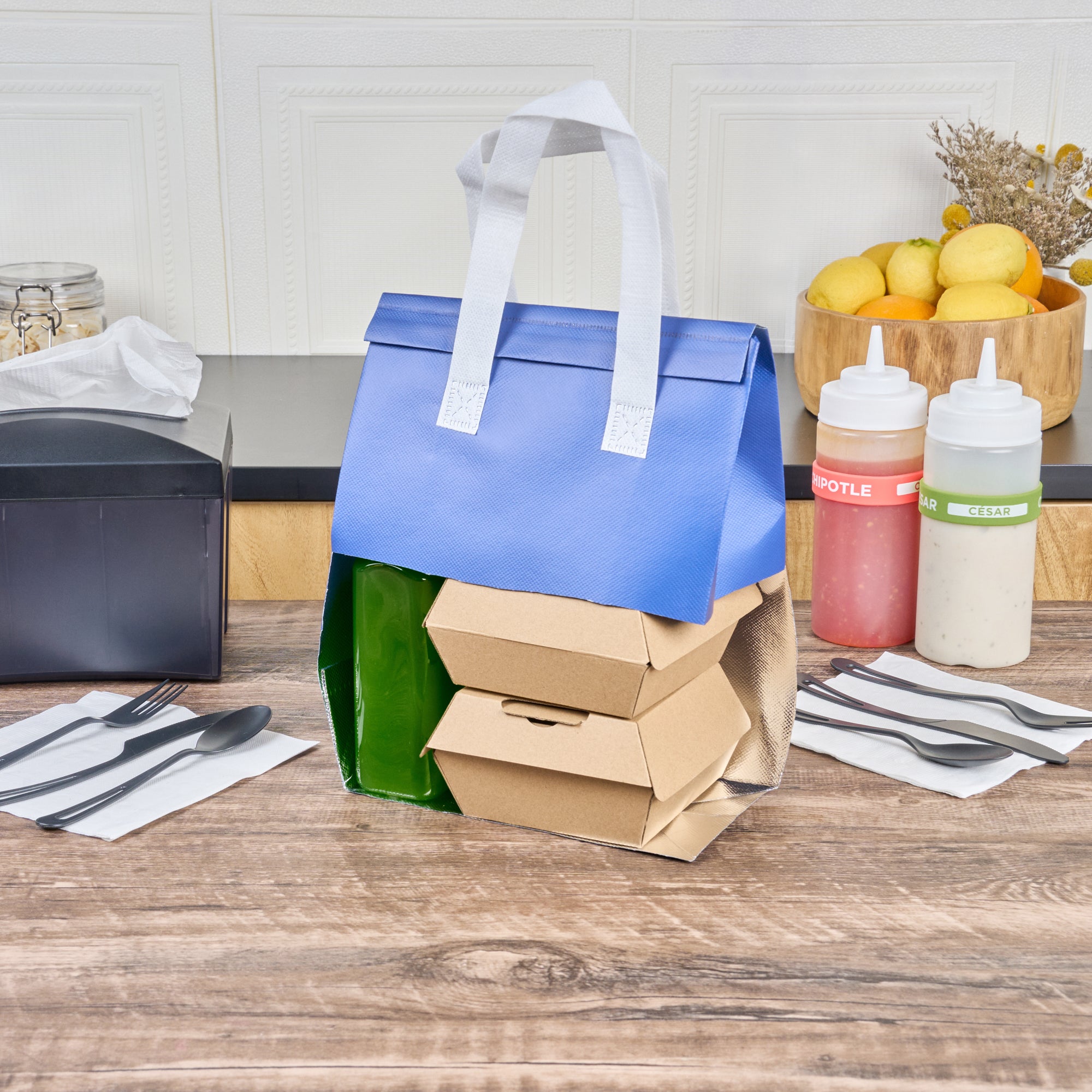 BLUE INSULATED TAKE OUT BAG - TAMPER-EVIDENT