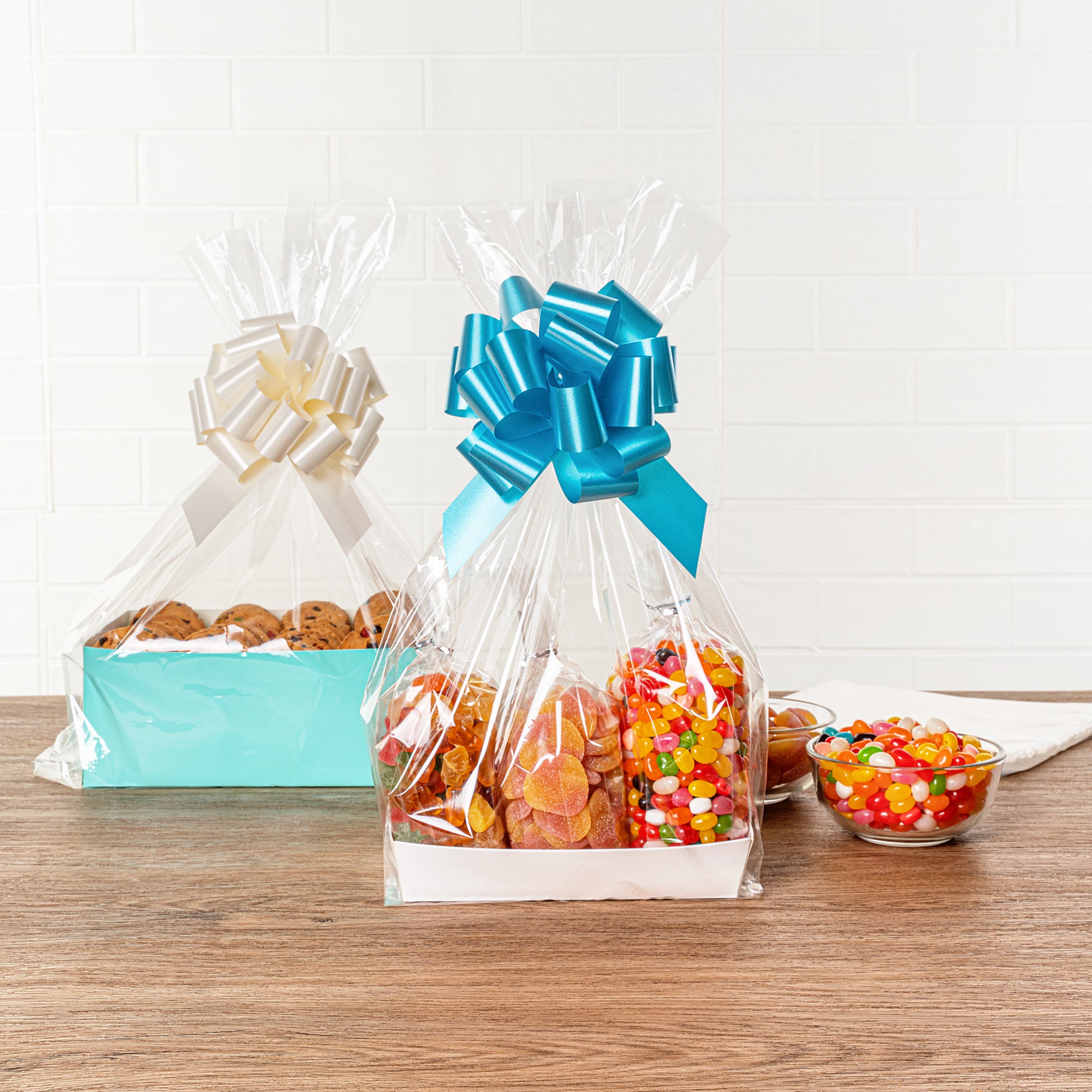 These plastic gift bags offer a crystal clear finish, ensuring your gift baskets are displayed in all their glory, igniting intrigue and appreciation. Perfect for showcasing the contents at any event or retail display.