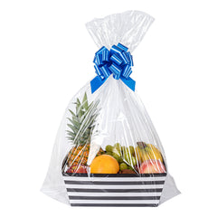 These plastic gift bags offer a crystal clear finish, ensuring your gift baskets are displayed in all their glory, igniting intrigue and appreciation. Perfect for showcasing the contents at any event or retail display.