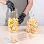 Beautifully showcase tasty treats with our Bag Tek Clear Plastic Gusset Bags. These gusset bags have a heat sealable design to lock in the freshness of your cookies, chocolate, popcorn, and other flavorful snacks. Featuring a paper insert on the base, these sturdy flat bottom bags provide your treats with extra support which allows them to easily stand upright on shelves or tabletops. These heat sealable bags have a clear finish to provide customers with a full view of your mouthwatering snacks or desserts. Made with gussets, these durable plastic bags easily expand to conveniently carry a number of different sweets. These clear candy bags are made from food-safe plastic which makes them great for storing food at your candy store, cafeteria, bakery, or other foodservice establishment. Measuring 5 inches long by 3 inches wide and 12 inches tall, these disposable snack bags are recyclable for quick and effortless cleanup after use. These plastic gusset bags are shipped flat for space-saving storage in your establishment and are sold in a 100 count box.