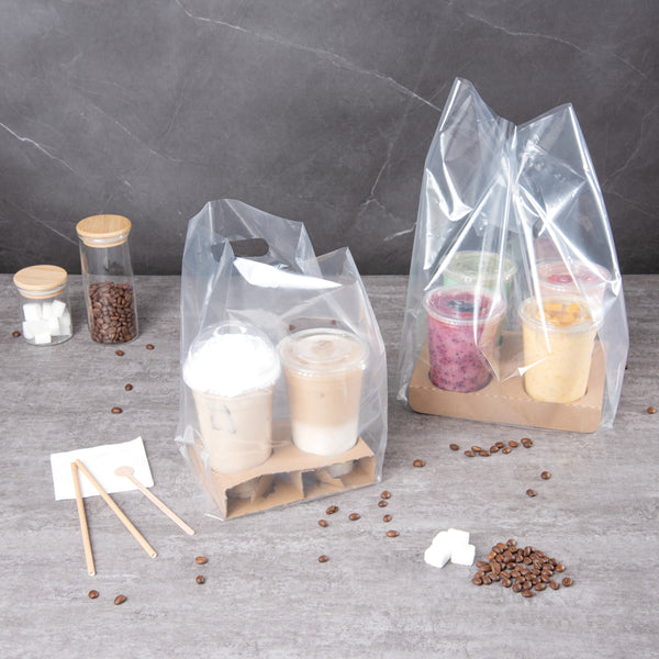 CLEAR PLASTIC TAKE OUT BAG - FITS 2-CUP DRINK CARRIER