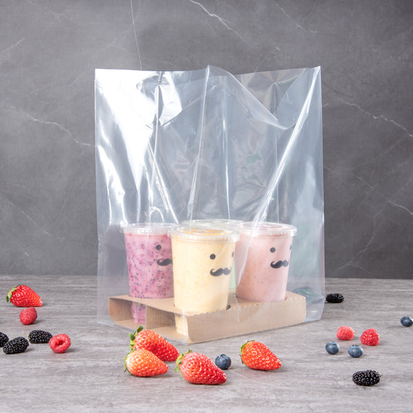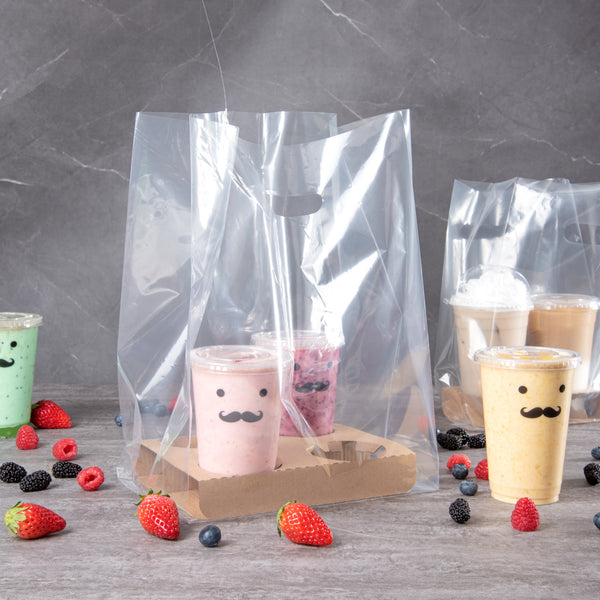 No need to balance all your drinks in one hand! Pair these clear carry out bags with our compatible drink carriers to conveniently take multiple beverages on the go.!
