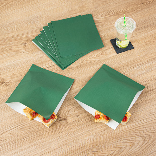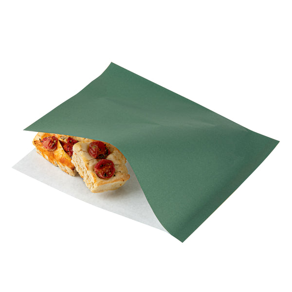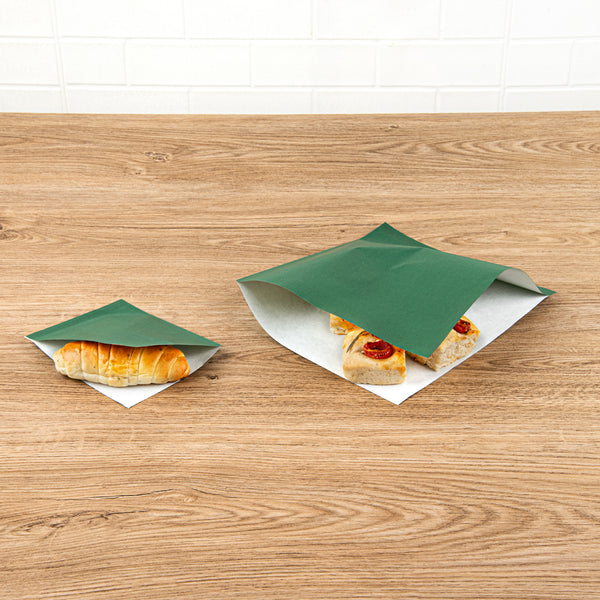 FOREST GREEN PAPER LARGE DOUBLE OPEN BAG - GREASEPROOF
