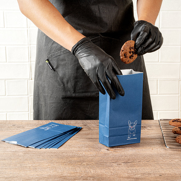Secure your guests' treats elegantly with our Bag Tek Frenchie Paper Bags. Crafted from high-quality paper, these disposable lunch bags are sturdy enough to carry sizeable meals. The sophisticated Frenchie design of these take out bags introduces an appealing touch to your takeaway packages. These popcorn bags feature a convenient open-top design that facilitates easy packing and allows for quick order checks. To keep oil or sauce from seeping through, these paper deli bags are grease-resistant and can comfortably accommodate saucy dishes. These Frenchie bags are freezer-safe allowing customers to refrigerate their leftovers conveniently. With a rectangular flat base and side gusset sleeves, these merchandise bags provide stability and extendability to accommodate more items. These 2-pound paper bags are disposable for quick cleanup. Each paper bag has a capacity of 2 pounds and measures 4.25 inches in length by 2.25 inches in width by 8.5 inches in height. Shipped in a 100 count box.