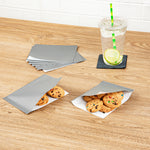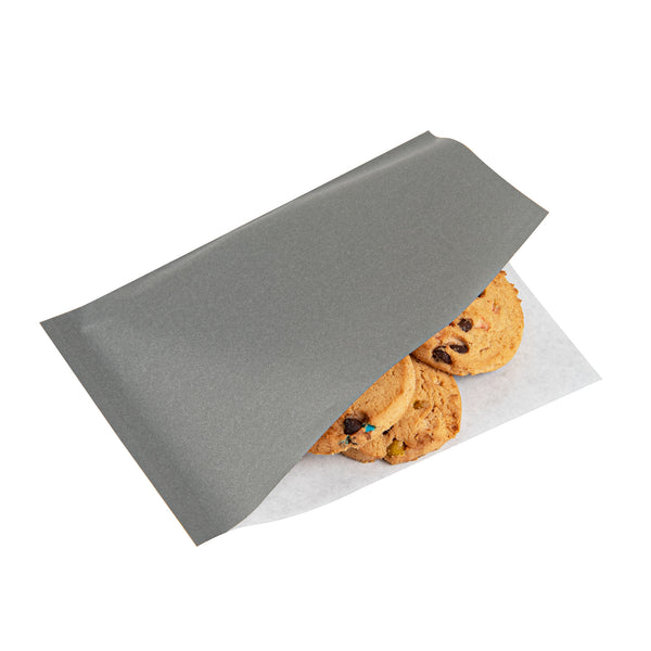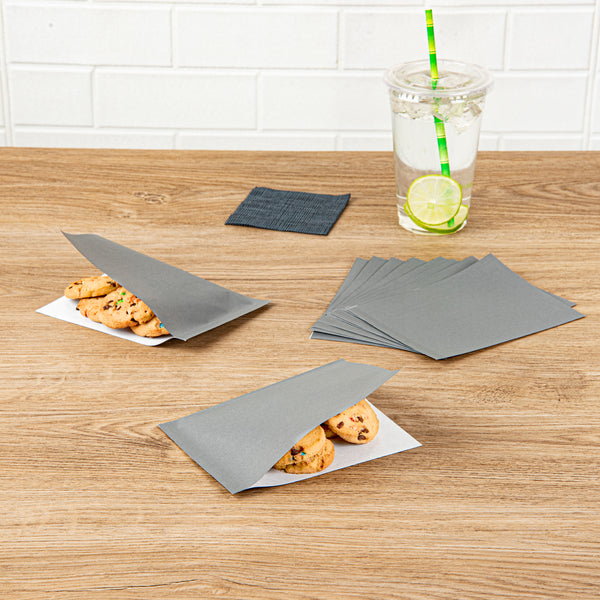 Indulge in a relaxed snacking experience with our Bag Tek Gray Paper Small Double Open Bags. These deli wrap liners are made from high-quality paper and are perfectly suited for smaller meals, serving as both reliable sandwich wrappers and effective liners for cone baskets. Designed with a greaseproof PE Lining, these double-open bags ensure that oily patches are kept at bay, preserving the bag's overall pristine appearance. The elegant gray finish of these paper snack wraps adds a touch of style to the look of meals, making them aesthetically pleasing. These deli paper sheets can be used in the microwave for up to 2 minutes to enjoy hot and delicious food. As a testament to sustainability efforts, these sandwich wrappers are recyclable, contributing to the reduction of carbon emissions in your restaurants, cafes, or food trucks. Each gray paper bag measures 6.25 inches in length by 4.75 inches in width. Sold in a 100 count box.
