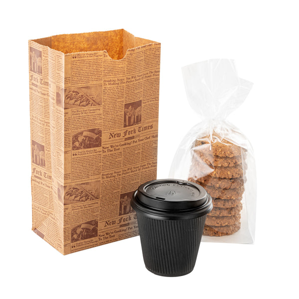 Give a new look to your guests' take out orders with our Bag Tek Kraft Newsprint Paper Bags. Manufactured with high-quality kraft paper, these paper sandwich bags are durable and do not rip easily. Plus, these kraft paper bags retain oils and sauces from seeping through. Styled with a newsprint design, these paper bags for food add a vintage touch to your guests' on-the-go orders. With an open-top design, these brown paper bags let you fold them to secure the contents during transit. These newsprint paper bags are microwavable and freezable, allowing your customers to store and reheat their leftover meals anytime. With a rectangular flat bottom, these bags without handles can stand upright on tables without falling for effortlessly packing orders. Conveniently disposable, these grocery paper bags are highly sustainable to speed up your clean-up process. The gusset sleeves on the sides of these paper lunch bags can be extended to provide more space to pack your dishes. Measuring 5 inches in length by 3.25 inches in width by 9.50 inches in height, these kraft bags can hold up to 4 pounds. Shipped in a 100 count box.