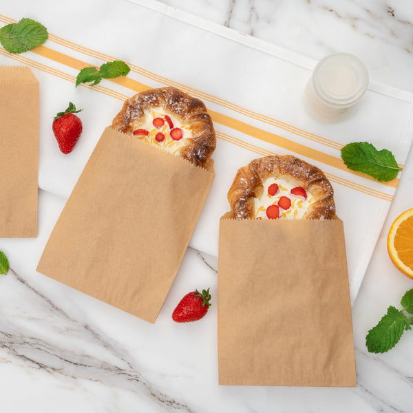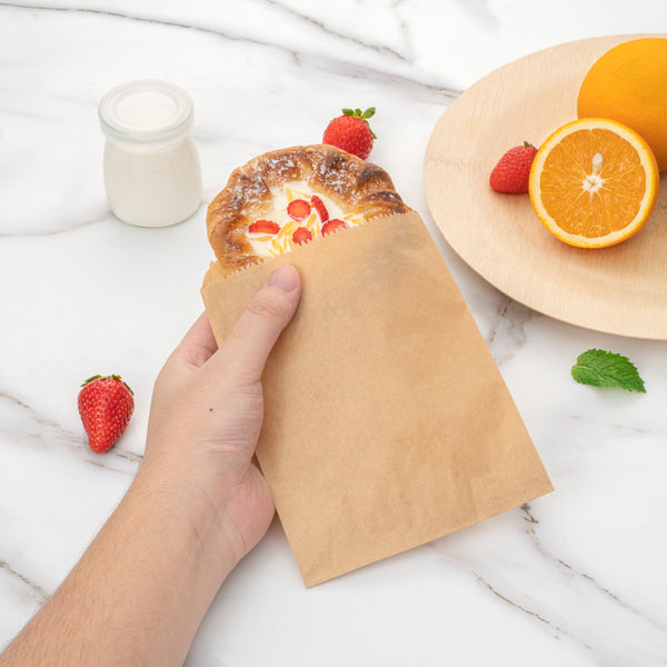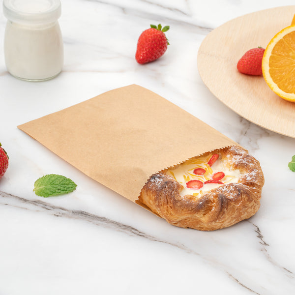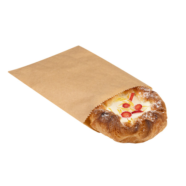 Effortlessly serve up snacks with our Bag Tek Kraft Paper Bags. Featuring an open-pouch design, these retail bags make it easy for customers to snack on food while on the move. With a greaseproof lining, these paper deli bags keep oils from seeping through and dirtying your customers' hands. The natural brown finish of these paper lunch bags gives your snack presentations a classic look. Made from kraft paper, these snack bags are biodegradable and recyclable so customers can easily dispose of them in an eco-friendly way after enjoying meals. These brown paper bags measure 7 inches in length and 5 inches in width. Sold in a 25 count box. This item will only degrade outside of the traditional solid waste stream.