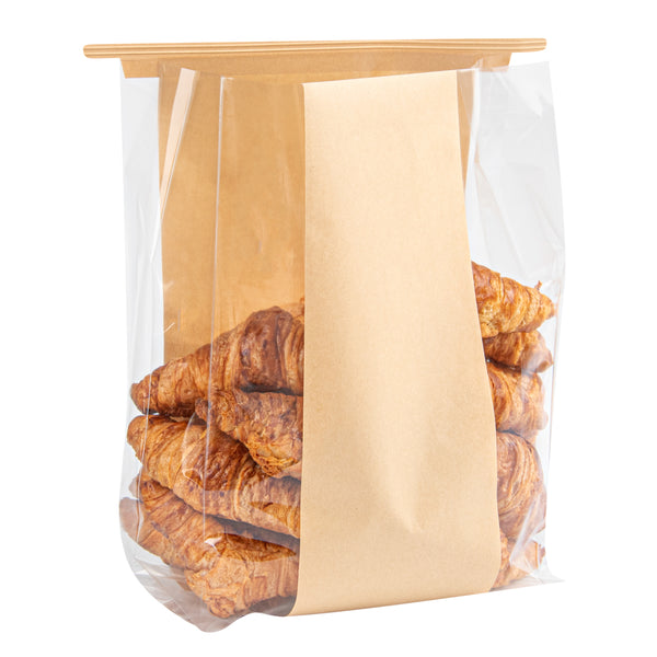 Keep baked goods protected with our Bag Tek Kraft Paper Bakery Tin Tie Bags. These tin tie bags feature a secure closure to ensure your bakery's treats remain fresh. With an easy-to-reseal design, these kraft bakery bags make it simple for customers to share desserts at their convenience. These kraft tin tie bags are crafted with a flat bottom, allowing the bags to stand upright on their own, facilitating the packing process for your staff. Made from kraft paper, these tin tie bakery bags are easily recyclable, providing customers with a hassle-free cleanup process. These kraft pastry bags are designed with a grease-resistant lining, making them ideal for a variety of treats such as cookies, brownies, or donuts. Each tin tie bag measures 8.25 inches long by 4 inches wide by 13.75 inches tall. Sold in a 100 count box.