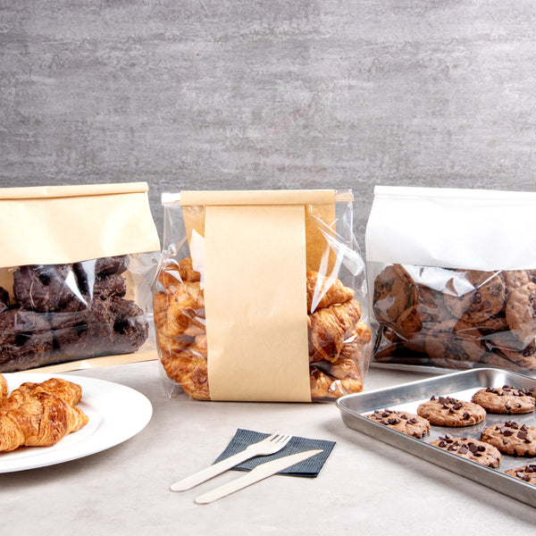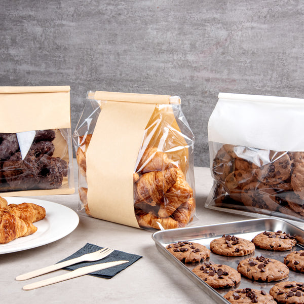 - Flat bottom allows bags to stand upright for quick packaging of treats