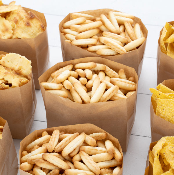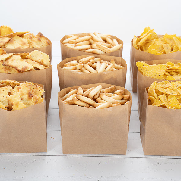 Ensure your snacks stay fresh and intact with reliable packaging. The Bag Tek Kraft Snack Bag features a durable kraft paper construction with dimensions of 4.25 inches by 2.5 inches by 3.75 inches, offering dependable containment for various snacks without tearing. This eco-friendly, recyclable material aligns with sustainability goals, making it an ideal choice for cafés and bakeries. Its flat bottom design allows the bag to stand upright, facilitating easy filling and an attractive display. Choose this kraft snack bag for a versatile and dependable solution that supports your foodservice needs. Each order includes 100 Bag Tek Kraft Snack Bags.