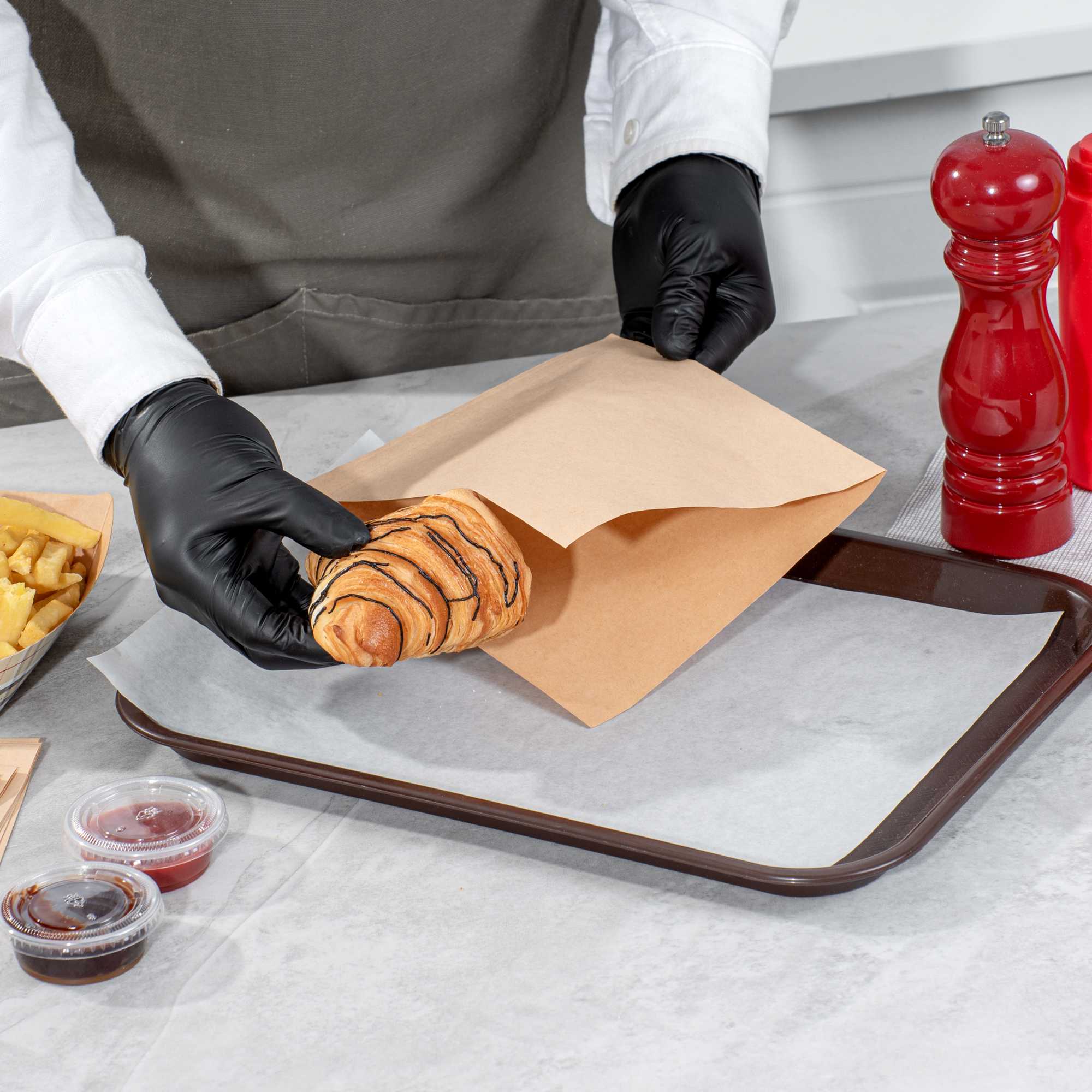 Keep snacks and pastries fresh with our Bag Tek Kraft Paper Medium Double Open Bags. Their greaseproof lining ensures sandwiches remain fresh, making it perfect for maintaining the appetizing appearance of your offerings. The unique double-open design and kraft color of these disposable paper bags make them not only easy to slide pretzels in and out of but also visually appealing, enhancing the presentation of your food items. Furthermore, these pretzel bags are freezer-safe, allowing you to store pre-prepared meals and desserts with confidence. With dimensions of 7 inches in length by 6.75 inches in width, these medium-sized kraft paper bags are ideally sized for snacks, pastries, and small loaves, providing flexibility in service options. Sold in a 5,000 count box.