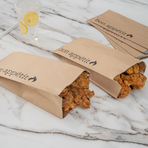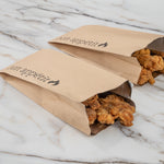 These foil bags have a greaseproof lining to ensure hands stay clean. You won't have to worry about oils seeping through during transport and creating unsightly greasy blotches. Bags will look perfect upon delivery!