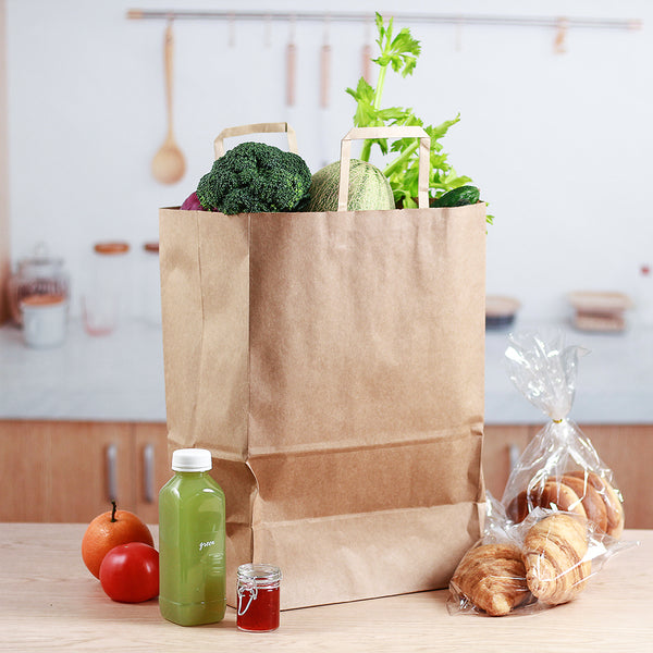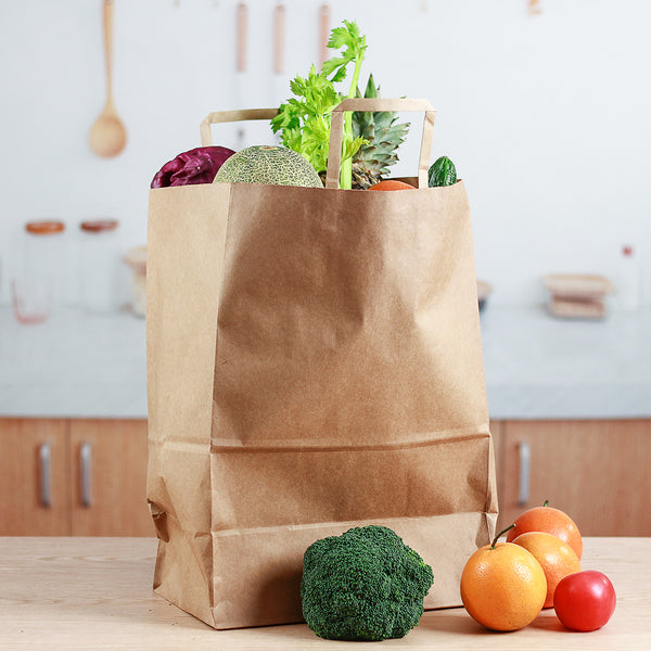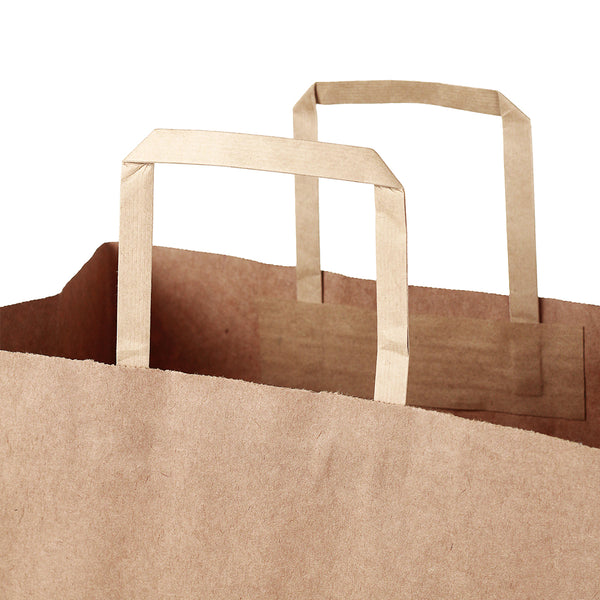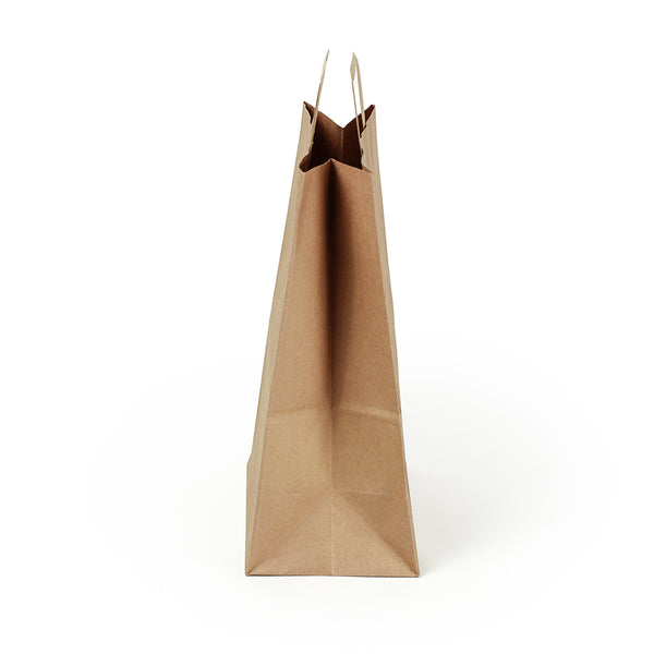 Easily pack up merchandise items or food orders for guests using our Bag Tek Kraft Paper Retail Bags. Ideal for bakeries, gift shops, restaurants, and other establishments, these take out bags are made from kraft paper so customers can dispose of bags in an eco-friendly manner after use. These paper retail bags feature a 90 gsm paper construction that offers a secure and reliable base to safely carry orders on the go without the risk of breaks or spills. Designed with reinforced, loop-style handles for secure handling, these take away bags provide a comfortable grip when carrying take out food orders. The kraft finish of these take out bags is ideal for adding a natural touch to your establishment's take out supplies. Each of these paper retail bags measures 17 inches tall by 12 inches in length with an expandable width of 7 inches. Each bag is shipped in a 20 count box.