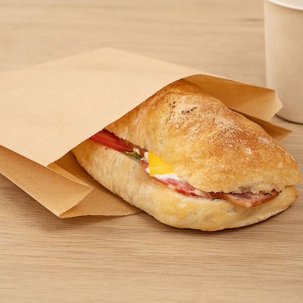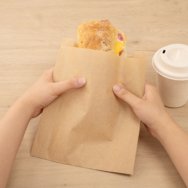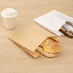Use our Bag Tek Kraft Paper Sandwich / Snack Bags to serve baked goods at your foodservice establishment. With a silicone coating, these disposable food bags are specially designed to hold greasy and oily treats without getting soggy. These kraft food bags feature a non-stick design that prevents baked goods from sticking to provide your customers with an easy way to enjoy foods. The opening of these kraft sandwich bags can be folded down and sealed with our collection of tamper-evident labels to keep your orders secure for transport. Featuring a kraft finish, these oil-resistant snack bags seamlessly complement your foodservice establishment's take out supplies. Each grease-resistant bag measures 7 inches long by 2 inches wide by 9 inches tall. Shipped in a 100 count box.