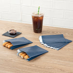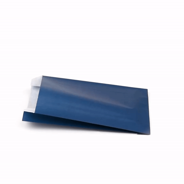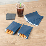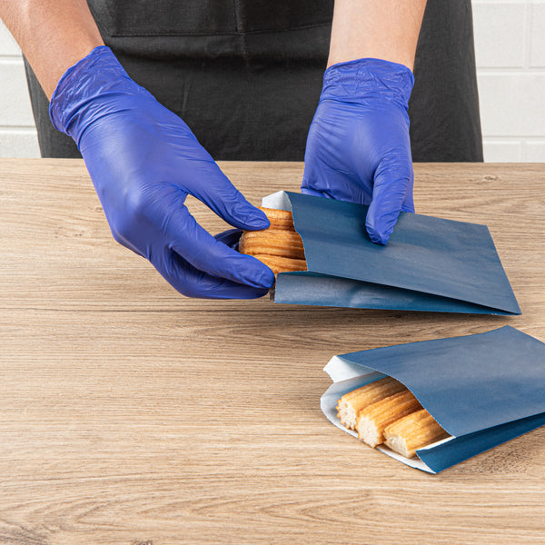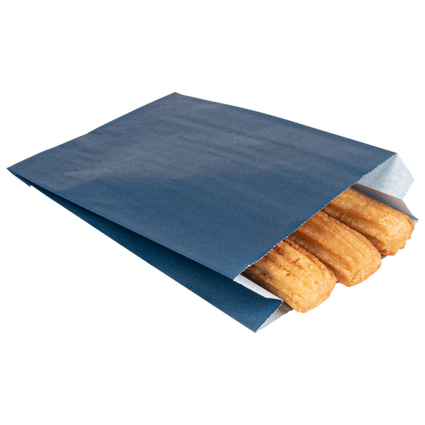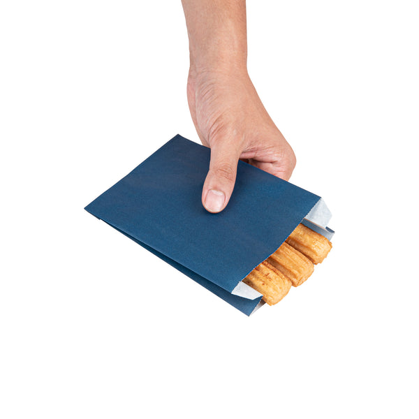 Enhance the snacking experience with our Bag Tek Midnight Blue Paper French Fry / Snack Bags. Constructed from high-quality paper, these midnight blue bags are greaseproof, preventing oily or greasy messes. The open-pouch feature of these snack bags grants patrons simple access to their finger foods. With an extended lip, these paper food bags streamline your food packing process as they allow them to be quickly opened up. For quick cleanup, these snack pouches are disposable. The striking midnight blue finish of these French fry bags complements your take out supplies. Each candy bag measures 4.25 inches in length by 1.5 inches in width by 6.25 inches in height. Sold in a 100 count box.