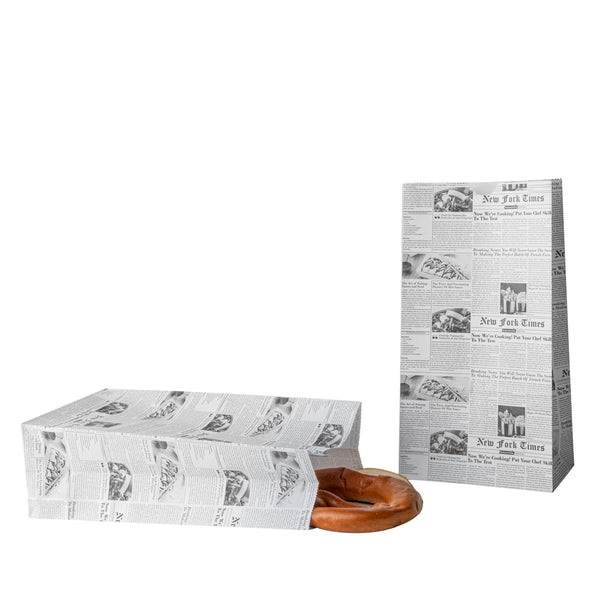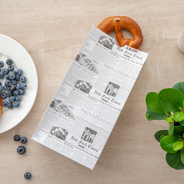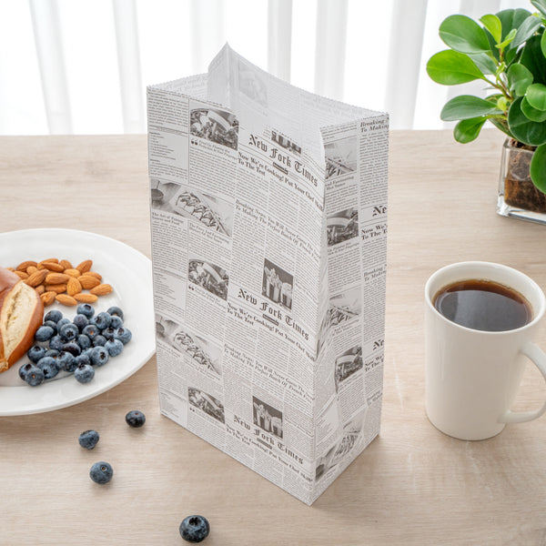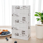 Easily fill up our Bag Tek Newsprint Paper Bags with your delicious snacks or desserts. Designed with flat bottoms, these retail paper bags stand upright on surfaces which allows you to comfortably store customers' purchases. Featuring an open-top design, these paper grocery bags can be rolled down to seal in your treats and prevent messes while on the go. Constructed from premium paper, these merchandise bags are recyclable for quick and simple cleanup after use. With a chic newsprint finish, these paper lunch bags enhance the look of your packaged snacks. These recyclable paper bags measure 6 inches long by 3.5 inches wide by 10.75 inches long and contain up to 6 pounds. Sold in a 100 count box.