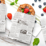 Hand out samples and snacks with our Bag Tek Newsprint Paper Bags. The open-pouch design of these disposable paper bags allows you to make your special treats portable. Crafted from greaseproof paper, these sandwich bags won't create unsightly oily spots to maintain their premium look. With a newsprint finish, these disposable bags give your take out presentations a touch of style. These paper snack bags are biodegradable and recyclable for a sustainable way to dispose of them after use. These newsprint paper bags measure 7 inches long by 5 inches wide. Sold in a 25 count box. This item will only degrade outside of the traditional solid waste stream.
