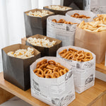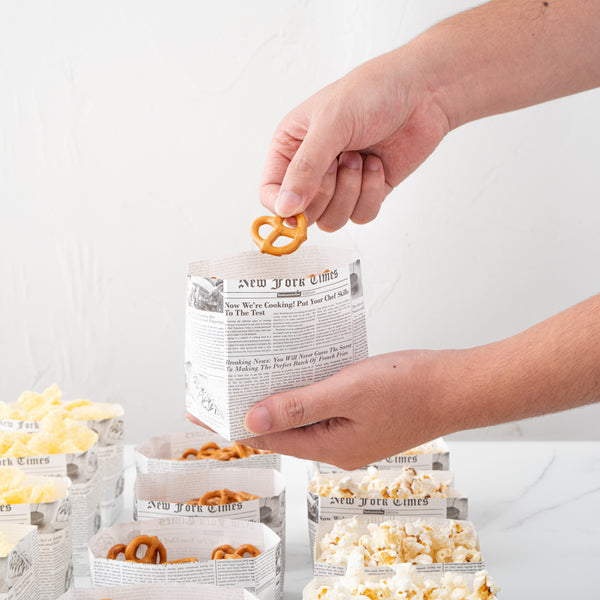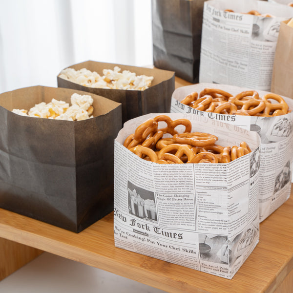 Keep snacks intact with snack bags. Bag Tek Newsprint Snack Bags feature a flat bottom design that allows them to stand upright, enhancing both presentation and ease of filling. Crafted from high-quality paper, these food safe snack bags provide the durability necessary to carry heavier food items, like sandwiches or pastries, without tearing. Perfect for holding snacks such as popcorn or pretzels, they’re ideal for concession stands and bakeries. Being both cold food friendly and recyclable, they cater to eco-conscious catering events and fresh sandwich offerings. Make every meal service efficient and environmentally responsible with these flat bottom snack bags. Each order includes 100 Bag Tek Newsprint Snack Bags.