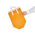 Ensure secure meal deliveries with insulated food delivery bags. Bag Tek Orange Nonwoven Insulated Food Delivery Bags feature advanced insulation technology, maintaining the perfect temperature for both hot and cold foods, making them essential for restaurants and caterers. These thermal grocery bags boast a tamper-evident design, ensuring food safety by alerting staff and customers if the bag has been accessed, which is critical for maintaining trust and hygiene. Their spacious dimensions of 10.25 inches in length, 6.75 inches in width, and 11 inches in height accommodate a variety of food containers, from large entrees to beverages and snacks, offering versatility for different menu items. Crafted from sturdy nonwoven material, these reusable cooler bags are lightweight, foldable, and easy to clean, providing a durable option for repeated use. Sturdy handles ensure easy, stable transport, even with heavy orders. Each order includes 100 Bag Tek Orange Food Delivery Bags.
