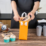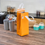Ensure food safety with Bag Tek Orange Thermal Delivery Bags. These insulated grocery bags feature advanced insulation technology that maintains the temperature of hot or cold items for hours, ensuring optimal food quality upon delivery. Their spacious design seamlessly accommodates large food orders, making them ideal for quick-service restaurants and catering services. Constructed from nonwoven material, these reusable insulated bags are lightweight and foldable, saving valuable storage space while providing easy cleaning for repeated use. Sturdy handles ensure stable transport, enhancing the reliability of your delivery service and adding a professional touch to your operations. With a vibrant orange color, these thermal delivery bags increase brand visibility and make a lasting impression on customers. Elevate your food delivery experience with these innovative bags that measure 4.75 inches by 4 inches by 11 inches. Each order includes 25 Bag Tek Orange Thermal Delivery Bags.