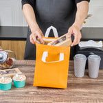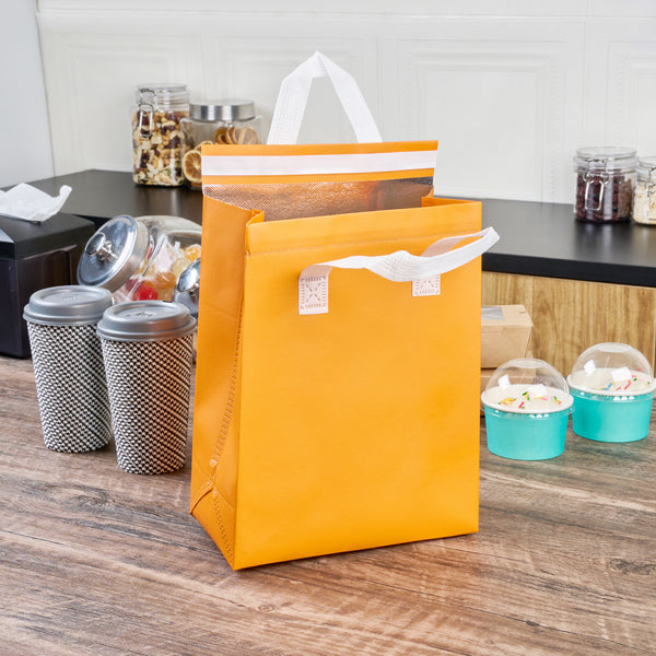 Ensure tamper-free food delivery with our insulated delivery bags. The Bag Tek Insulated Nonwoven Delivery Bags feature advanced insulation technology that maintains ideal food temperatures for hours, making them essential for any foodservice operation. With a spacious design measuring 8.25 inches in length, these thermal takeout bags accommodate full meal packages with ease, allowing restaurants to deliver a variety of dishes without compromising quality. Made from durable nonwoven material, these reusable thermal bags are designed for stability with sturdy handles that ensure easy carrying, reducing the risk of spills during transport. The bright orange color enhances brand visibility, making them a standout choice for catering and takeout services. Invest in reliable packaging to keep your deliveries secure and efficient. Each order includes 100 Bag Tek Insulated Nonwoven Delivery Bags.