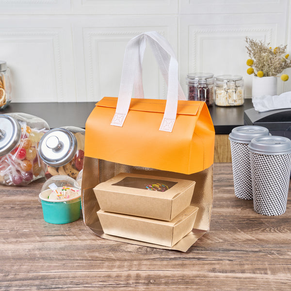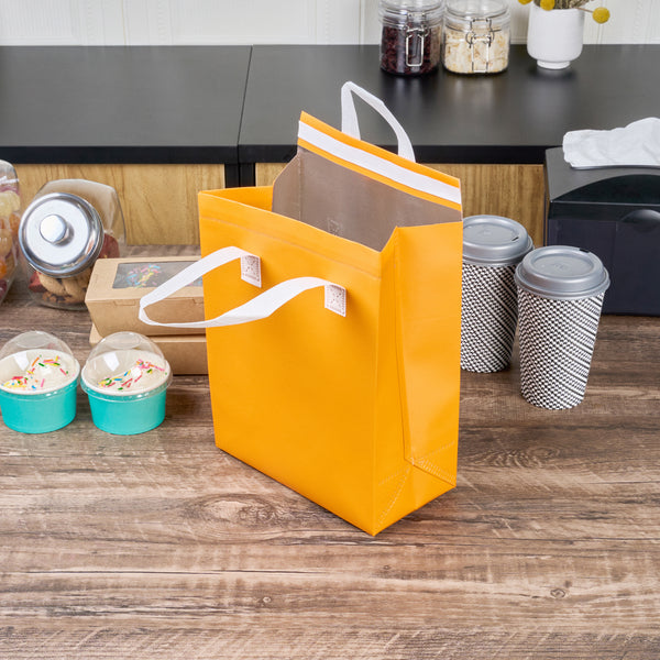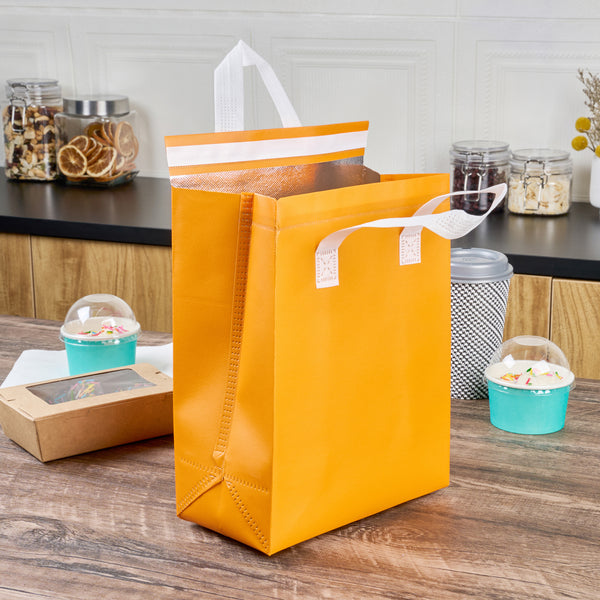 Ensure tamper-free food delivery with our insulated delivery bags. The Bag Tek Insulated Nonwoven Delivery Bags feature advanced insulation technology that maintains ideal food temperatures for hours, making them essential for any foodservice operation. With a spacious design measuring 8.25 inches in length, these thermal takeout bags accommodate full meal packages with ease, allowing restaurants to deliver a variety of dishes without compromising quality. Made from durable nonwoven material, these reusable thermal bags are designed for stability with sturdy handles that ensure easy carrying, reducing the risk of spills during transport. The bright orange color enhances brand visibility, making them a standout choice for catering and takeout services. Invest in reliable packaging to keep your deliveries secure and efficient. Each order includes 25 Bag Tek Insulated Nonwoven Delivery Bags.