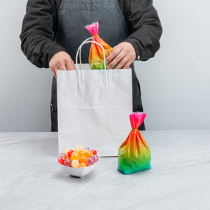 Whether you prefer the classic rectangle look or the playful cone shape, these candy bags offer the perfect canvas for your sweet creations, ensuring a delightful and visually appealing presentation. The rectangle plastic bags are gusseted for extra room for your treats.