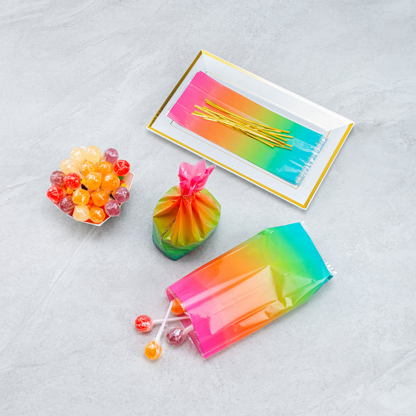 PLASTIC CANDY BAG - RAINBOW OMBRE, GUSSETED