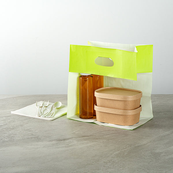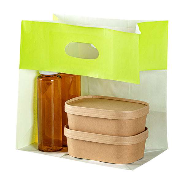 - Cut-out handles enable comfortable carrying of several food items for delivery