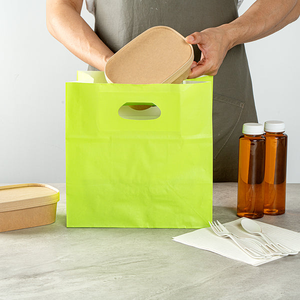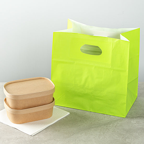 RECTANGLE ECO GREEN PAPER TAKE OUT BAG - WITH HANDLES